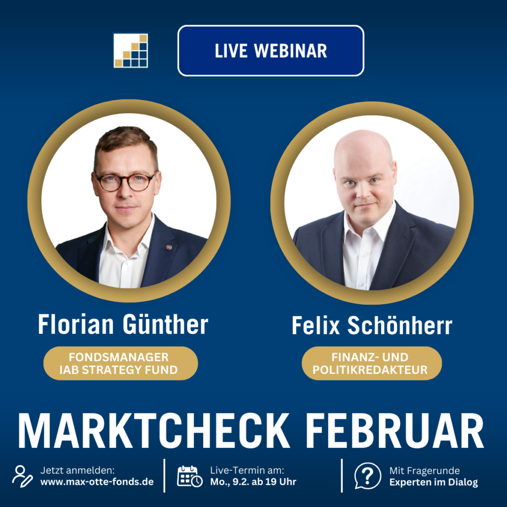 Das Team von Prof. Dr. Max Otte  lädt Sie am Montag, den 9. Februar 2026 ab 19 Uhr herzlich zum exklusiven Live-Webinar „Marktcheck Februar“ ein. In diesem Webinar erfahren Sie aus erster Hand, welche Szenarien wir erwarten und mit welchen Strategien wir unsere Fonds ausrichten.